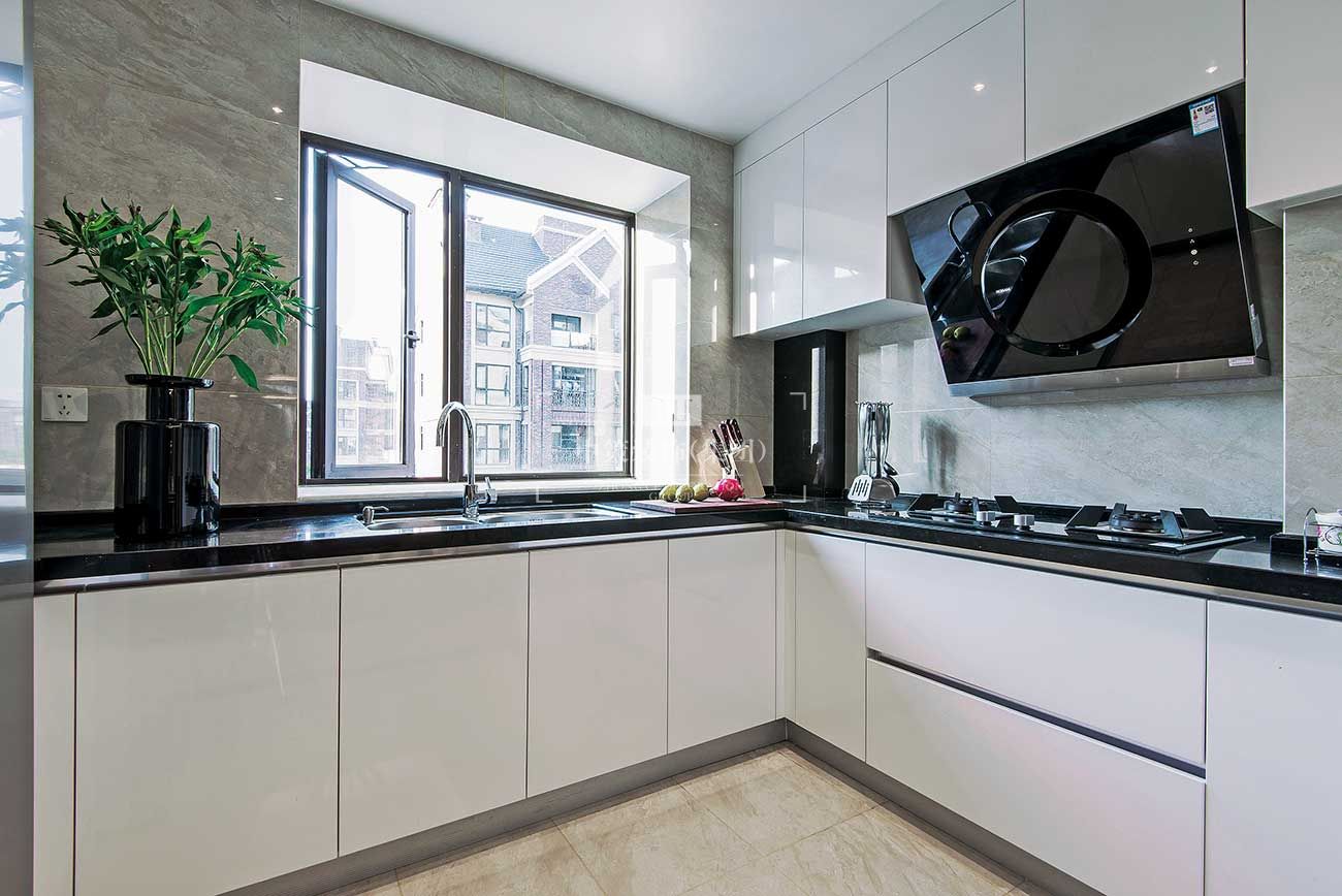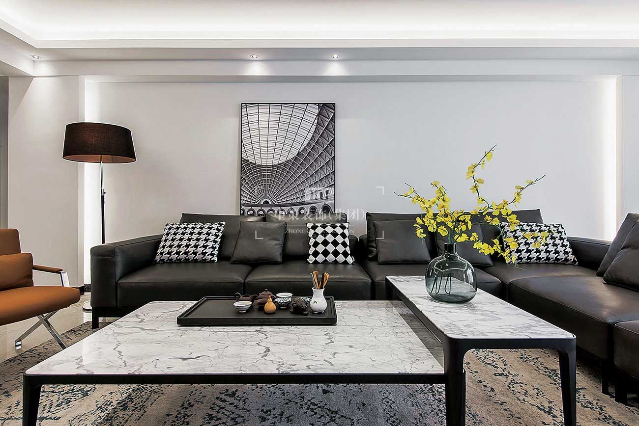 无论是简约干净的背景设计,还是个性鲜明的软装配饰,都充分突出了设计的素雅和简洁。直线条的设计是现代风格非常重要的运用元素。黑白色调的陈设品,搭配局部彩色的小品设计,让整个空间主次分明,更加符合业主对极简的追求。