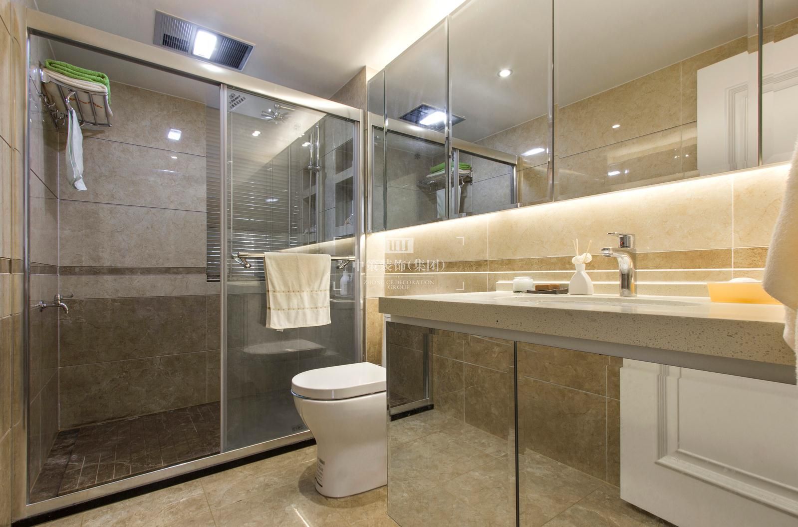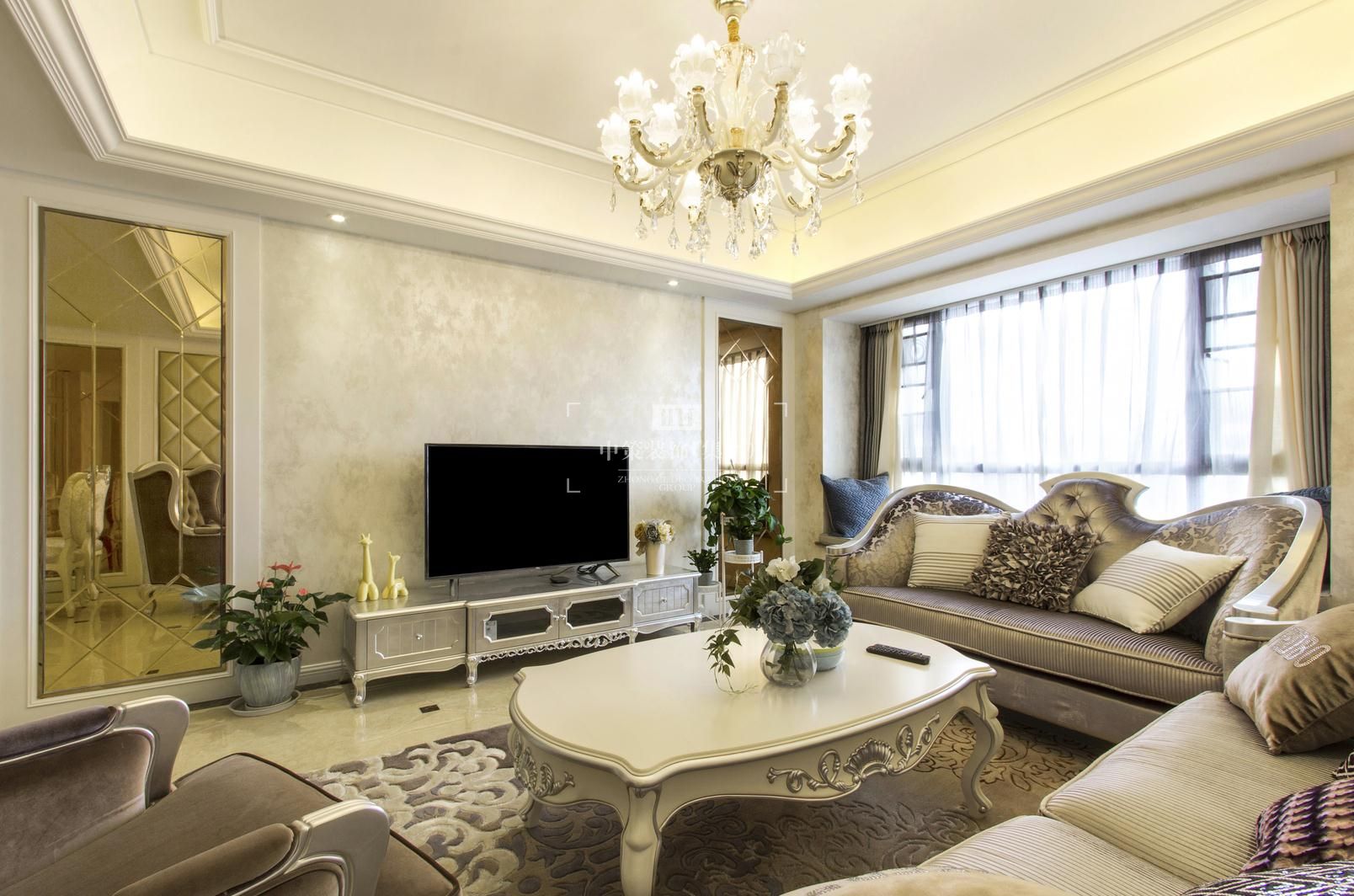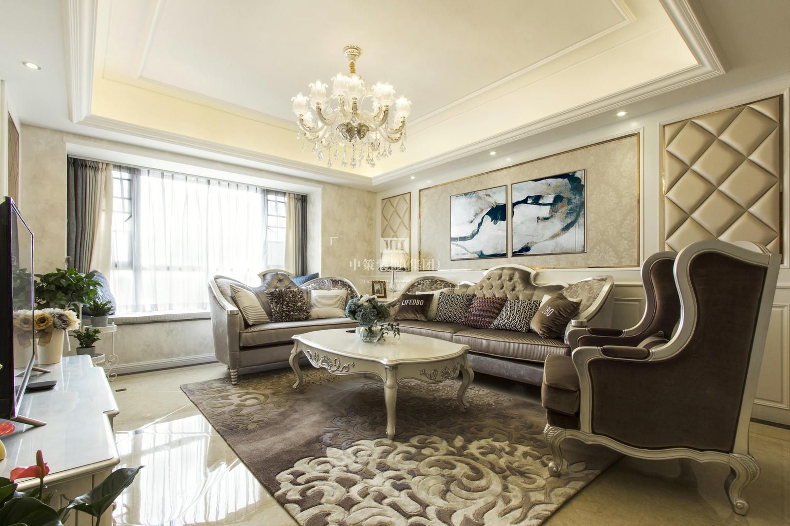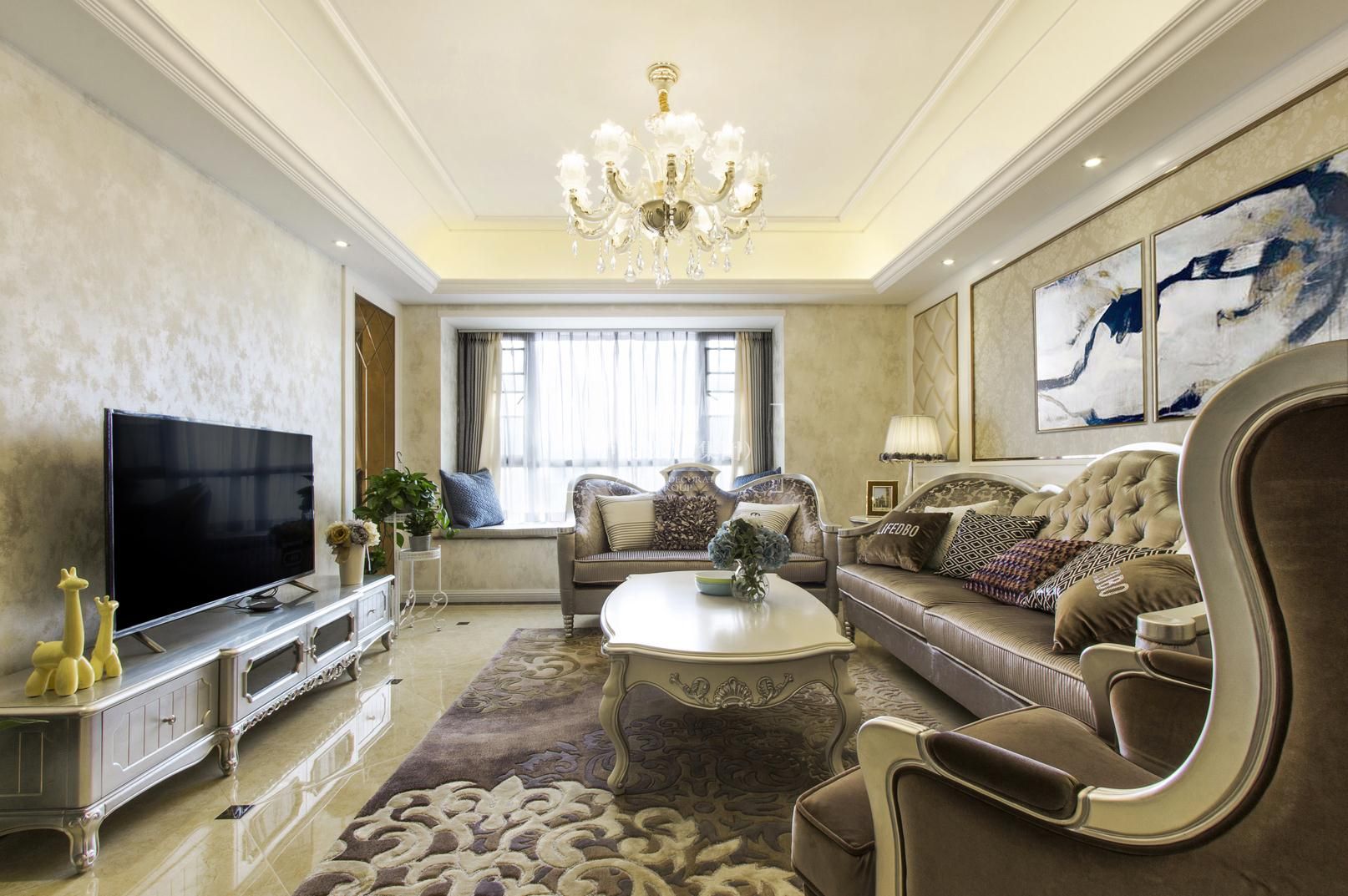 本案设计的主题是新古典,摈弃了巴洛克和洛可可风格所追求的新奇和浮华,建立在一种对古典的新的认识基础上,强调简洁、明晰的线条和优雅、得体有度的装饰。无论是窗帘,沙发还是墙砖总能在不经意间勾起人们的浪漫情怀。